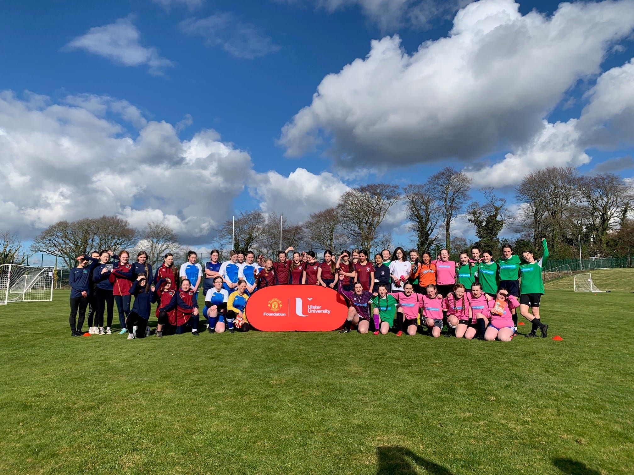 On Friday, to continue celebrating women in sports and the positive effects of physical activity the Female Sports Forum travelled to Derry/Londonderry to Oakgrove Integrated College to attend the Manchester United Foundation’s girls’ football tournament. The energy of the day was great with four schools and the mayor attending! The Female Sports Forum presented before the tournament about the dropout of teenage girls in sports to year nine and ten girls from Oakgrove. The presentation showed the benefits of staying active and how skills acquired from sports can positively affect skills used in school and the workplace later in life.